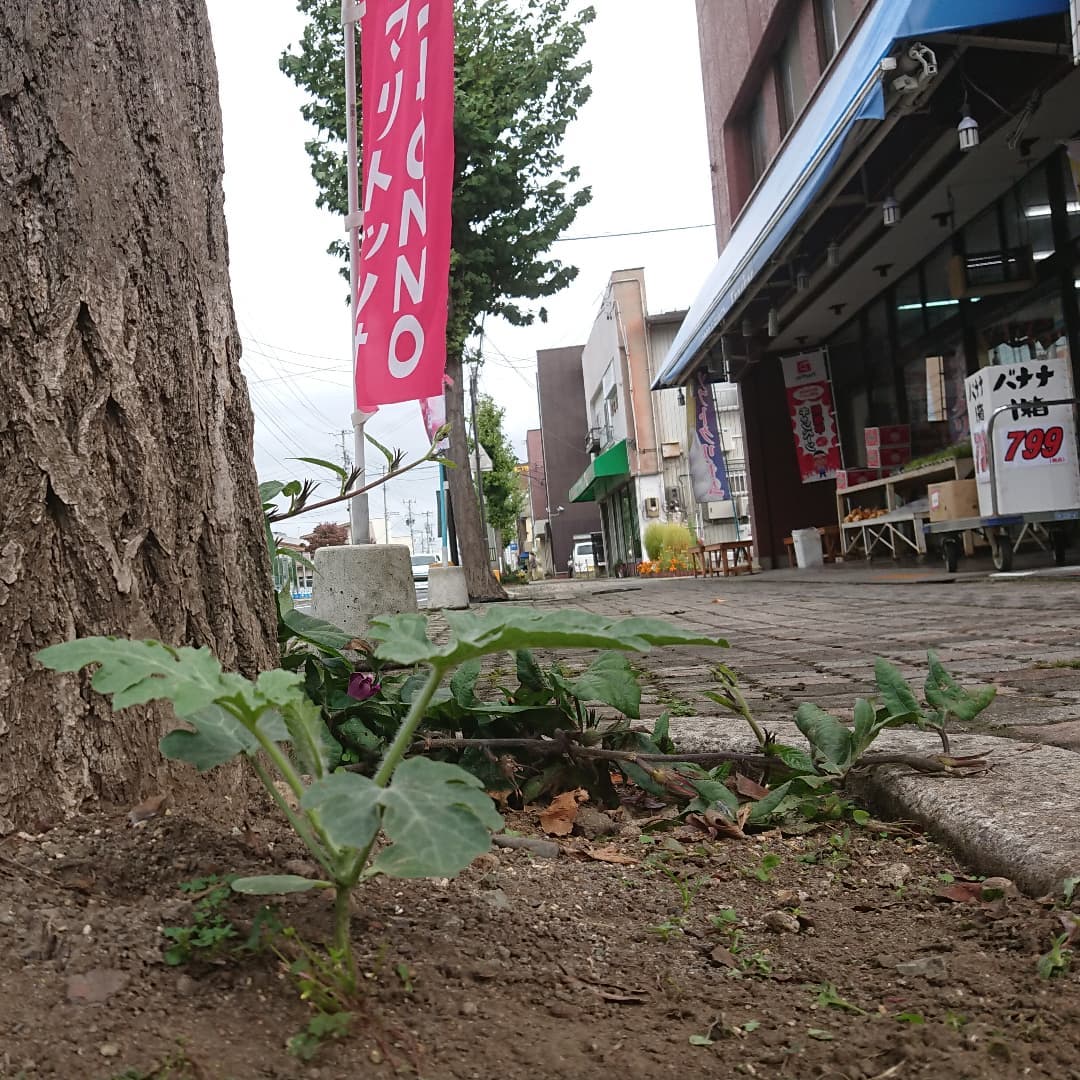 自動販売機前の街路樹の根本になにやら 芽が出てきた。 なんとなく西瓜の葉っぱのような感じだ。おそらく夏場に試食したときの種があったのだろうか。