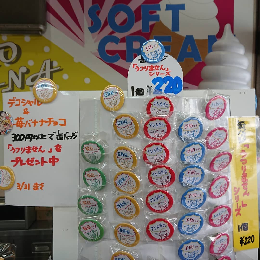 葉ものは「とりどり2袋️」130円 品薄の花ワサビ2度目の入荷です。ちょっとだけ価格が上がりました。 デコシャル️&苺バナナチョコに 1本に1個『花粉症です』などの缶バッジをプレゼント中~️