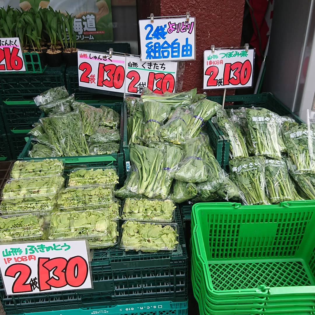 - 葉ものは「とりどり2袋️」130円 品薄の花ワサビ2度目の入荷です。ちょっとだけ価格が上がりました。 デコシャル️&苺バナナチョコに 1本に1個『花粉症です』などの缶バッジをプレゼント中~️