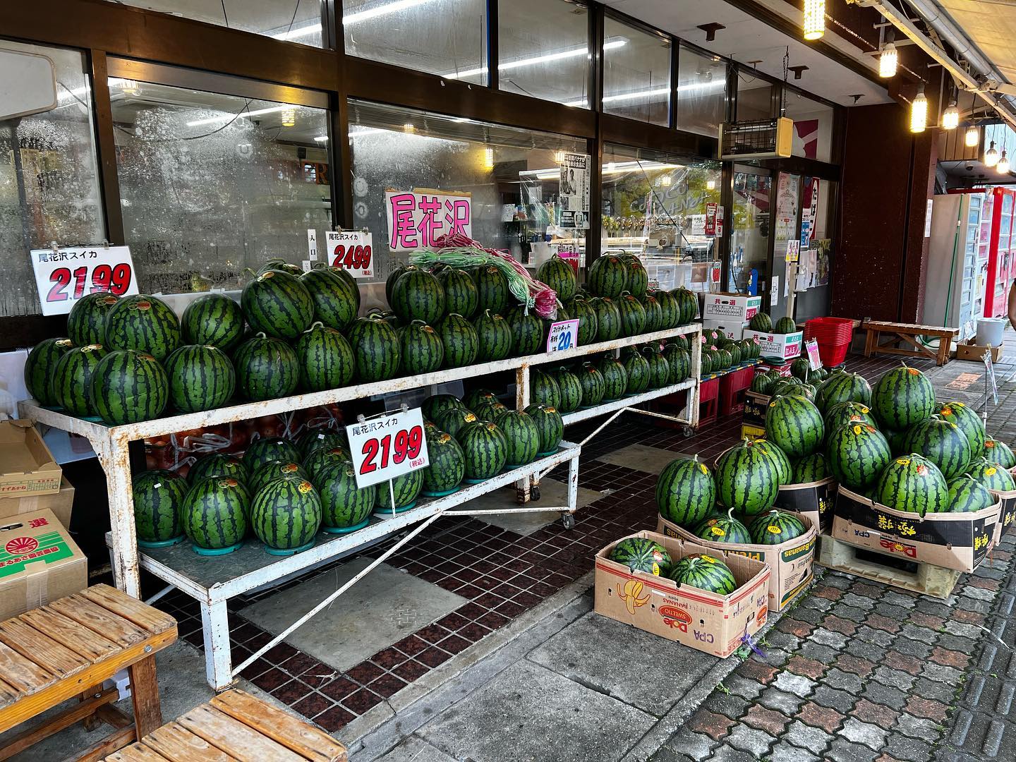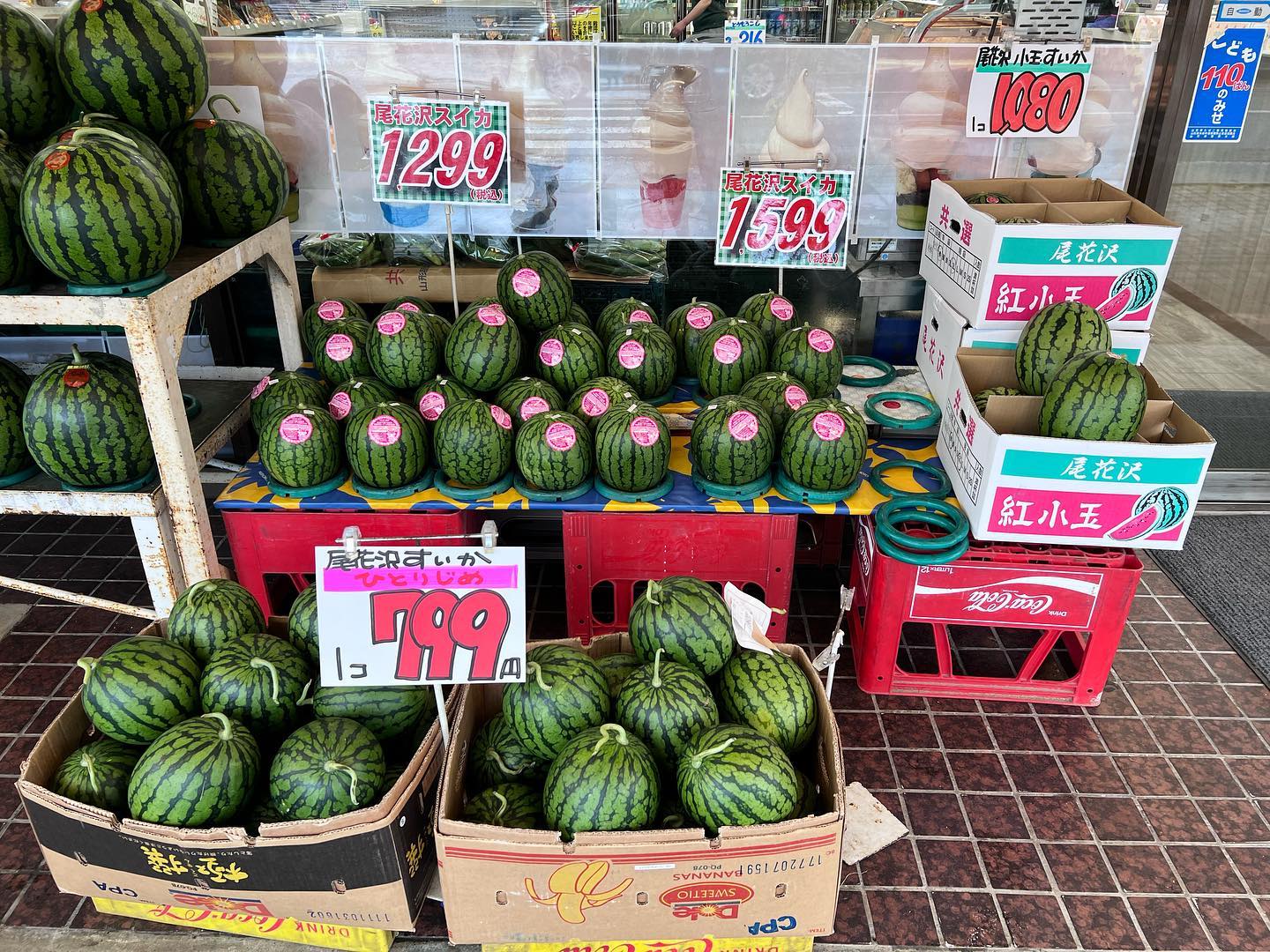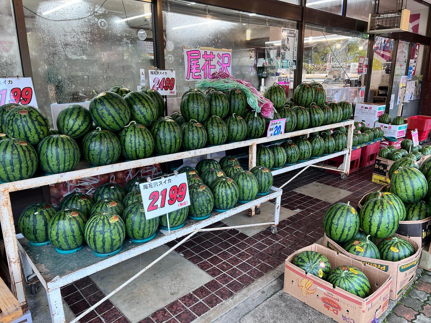 - 雨の日サービス️ 尾花沢スイカセール️ 2,500円を1,999円に雨の日限定セール もぎたて、じくつき、大きくても小さくても1,999円に均一価格️ 本日7/15晴れてきたり現物が売り切れれば終了!(対象は一山だけです) 小玉スイカも充実 799円〜️
