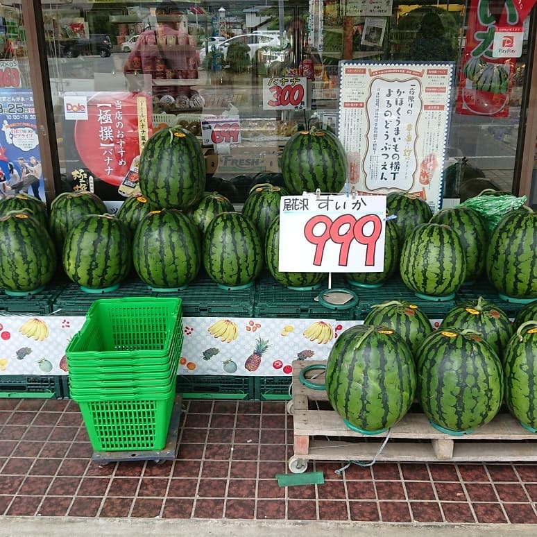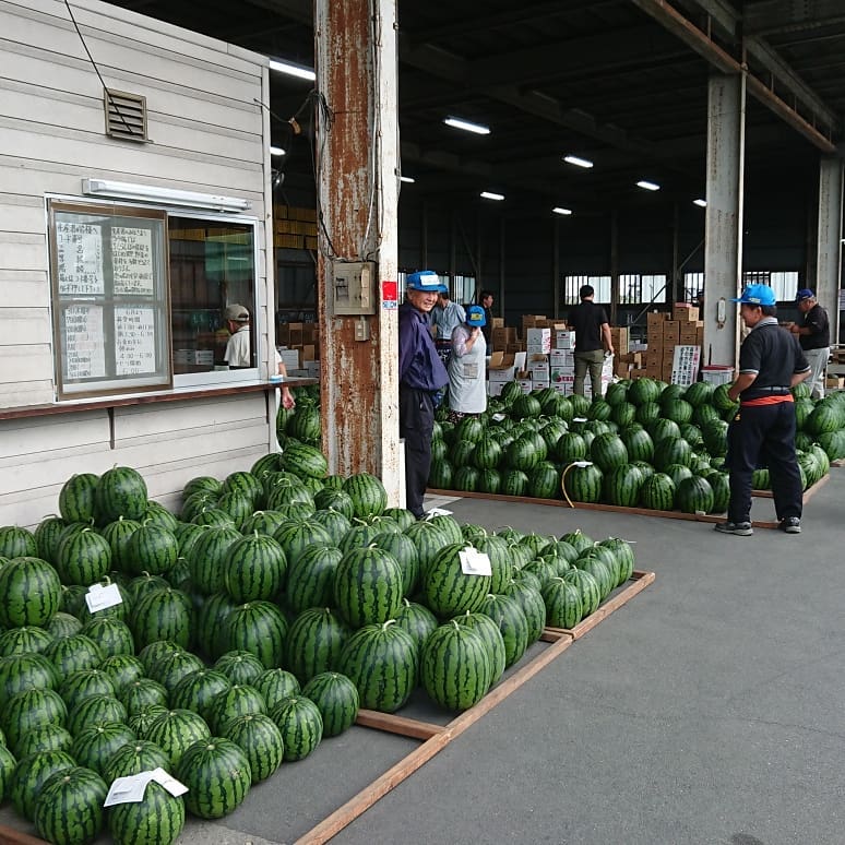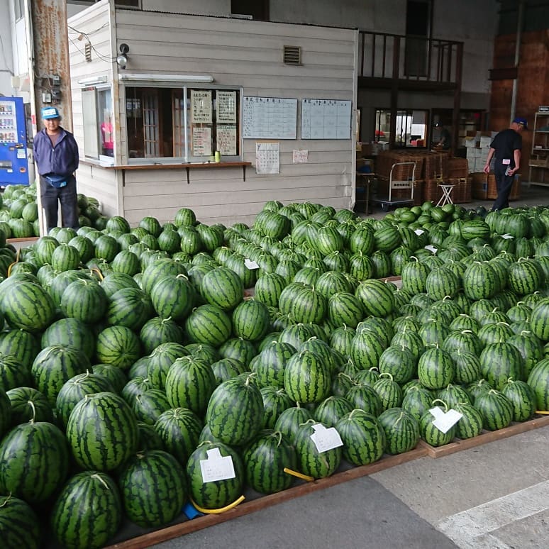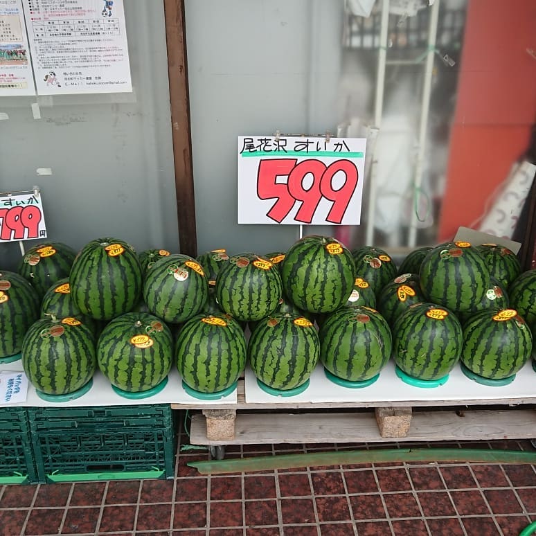 - 青果市場にはスイカがい~っぱい 尾花沢スイカが最盛期に突入です。クラッカーでは今日も大量仕入れに成功~️ スイカ売り場の確保のため、週末の店頭スイカを大幅値下げの 1個599円で売り切りま~す。 今日仕入れのスイカは超大玉999円️ 大玉899円になります️