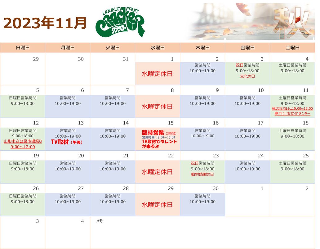 11/15は定休日のところですが、 時間限定で臨時営業をいたします。代休は取りませんのでよろしくお願いします。 11日寒河江市『輪がまちマルシェ』 寒河江市市民文化センター 12日山形市公設市場祭り 13日TV取材 15日TV取材(タレント来店予定)