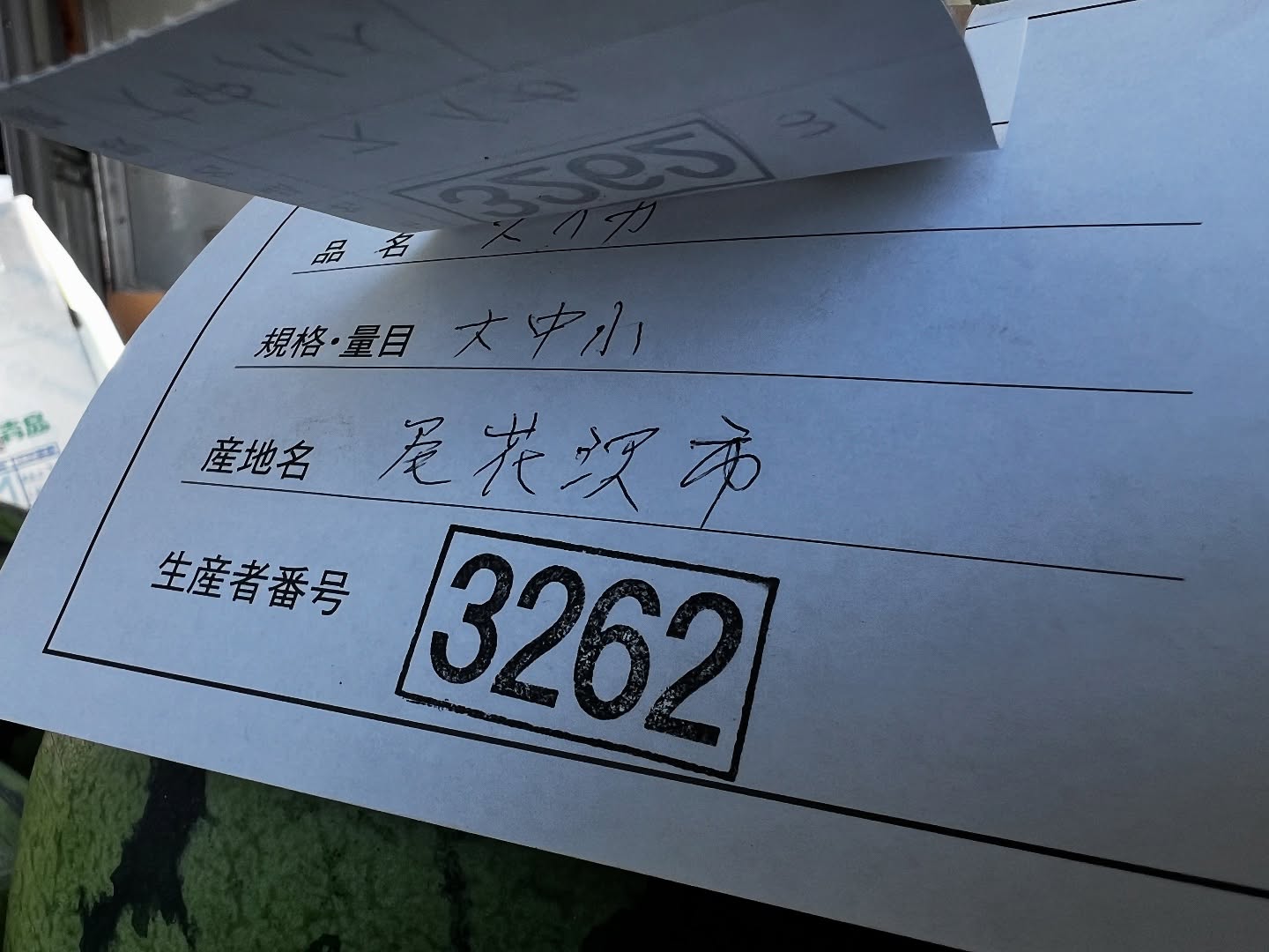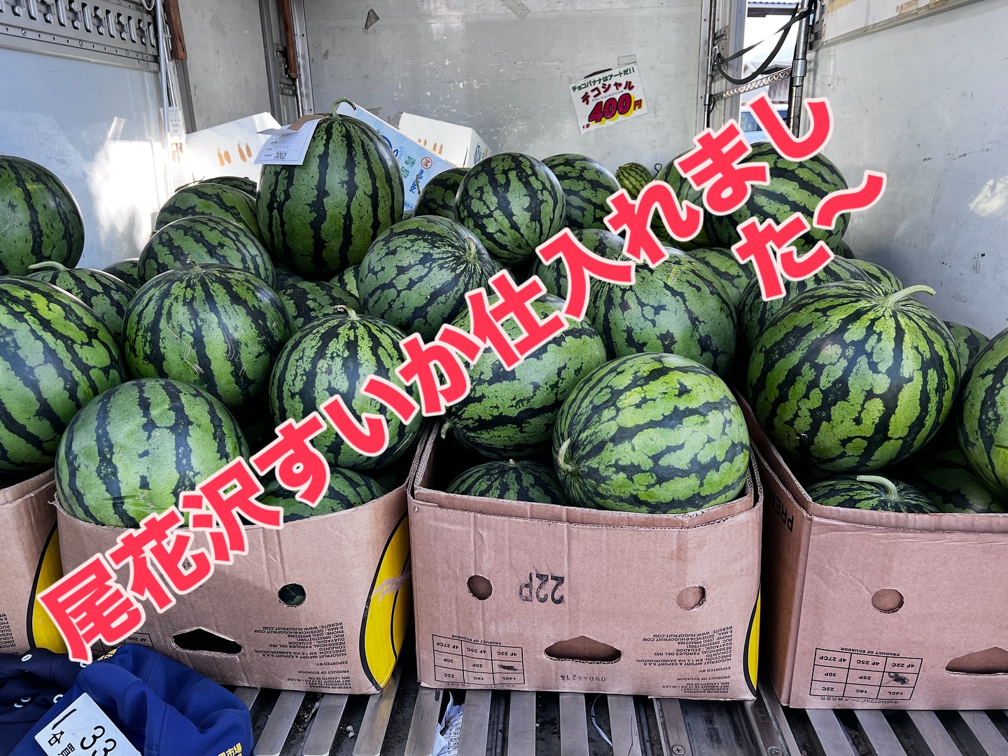 - 7/30(水)定休日ですが、スイカの仕入れは連日あります。尾花沢すいか200数十個、大中小混ざっている山を競り落としました。積むのも大変だけど店に下ろすのも一仕事あります。明日は10:00〜開店でお待ちしております。