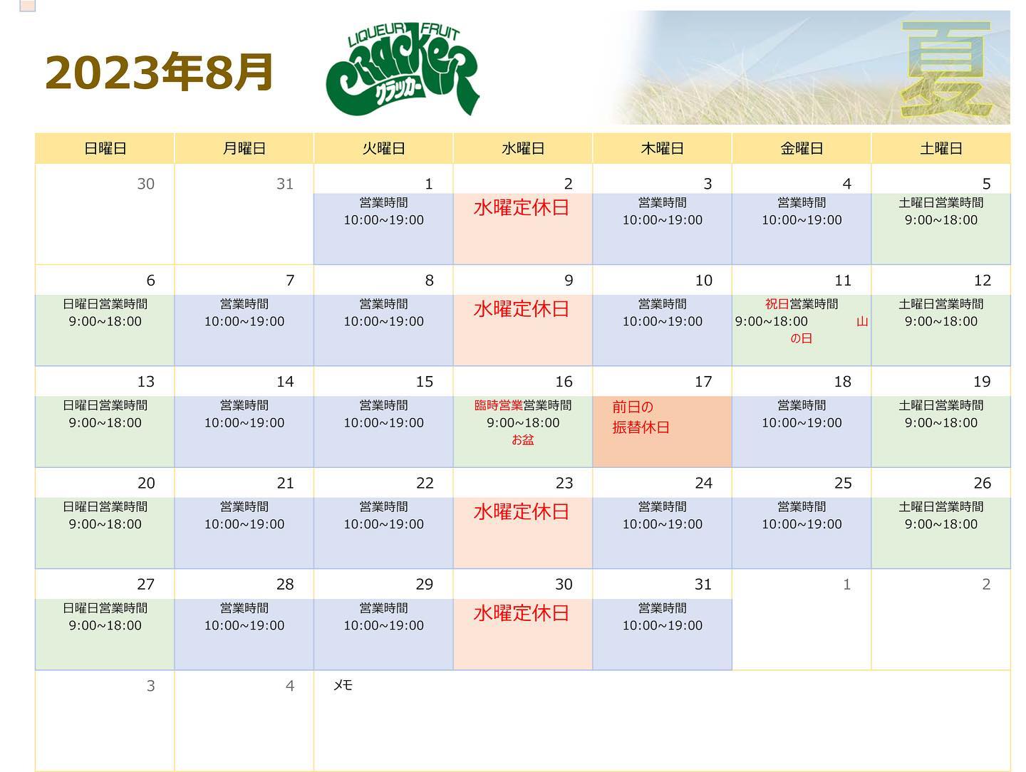 8/17(木)振り替え休日になり お休みです。