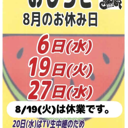 8/19は臨時休業日です。翌20日はTV生中継のため営業いたします。東北放送「ひるまでウォッチン!」 10:56〜くらいからです。残念ながら山形では見られませんが、宮城県の皆さん見てくださいね〜。 2025年8月18日(月)